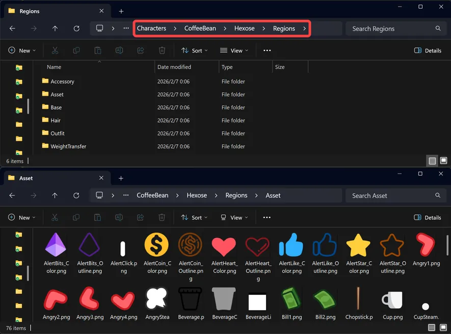 - 目标:[CharacterFolder]/Regions/(单独的区域 PNG)。